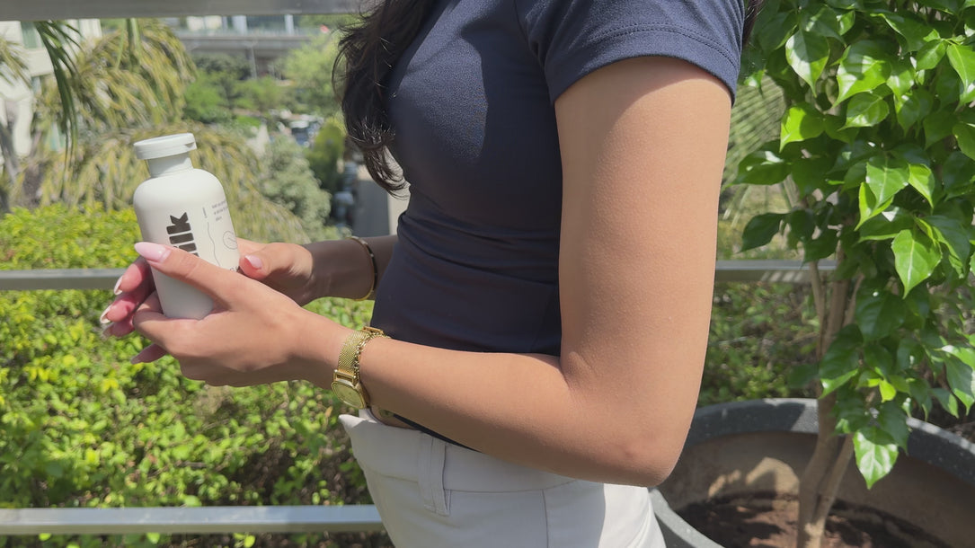 It’s a lightweight body sunscreen with SPF 50 | PA++++, enriched with ceramides, niacinamide, and oat milk extract — designed to protect, hydrate, and soothe your skin all at once.